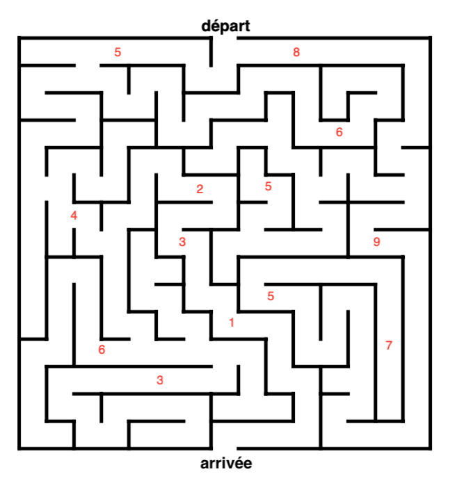 Note les nombres que tu trouves pour sortir de ce labyrinthe.